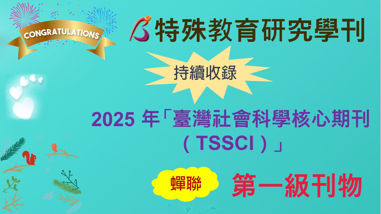 狂賀!本刊持續收錄2025 年「臺灣社會科學核心期刊(TSSCI)」,並蟬聯第一級刊物!